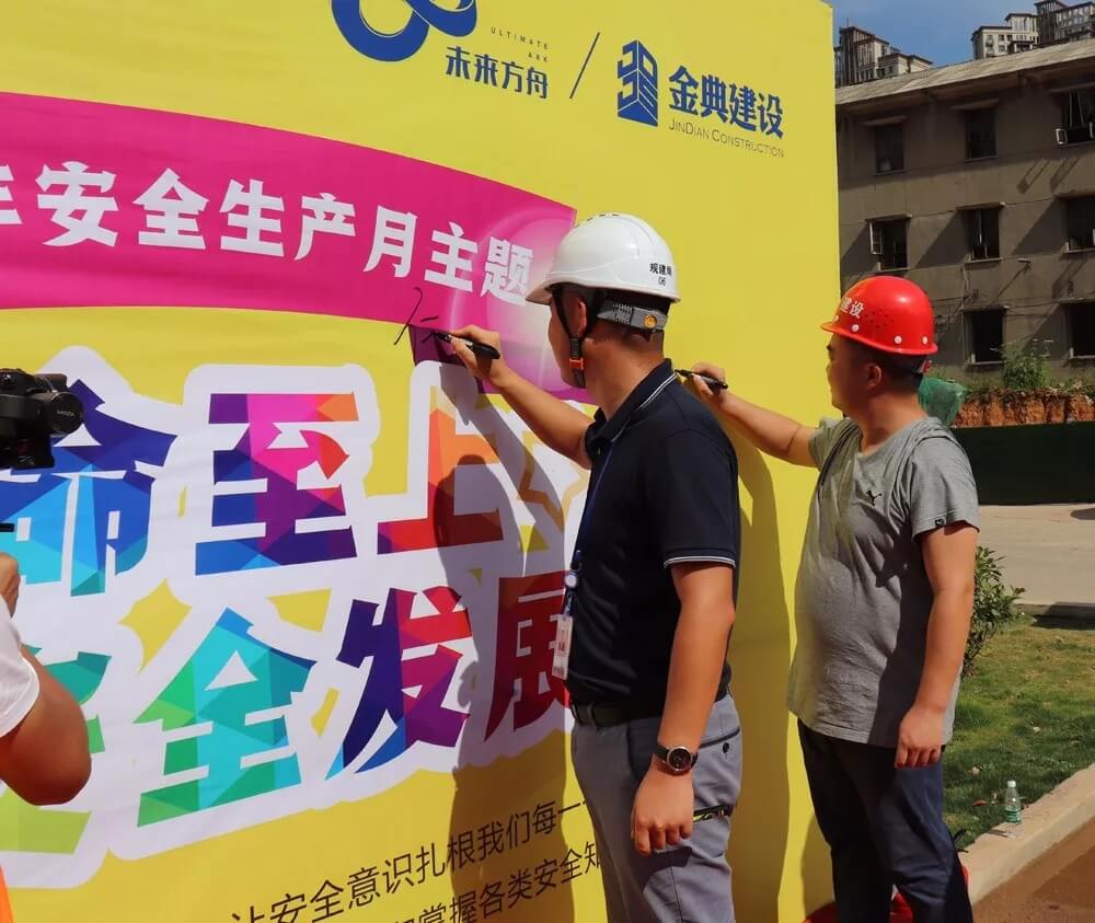 2018年6月27日下午,長沙金典建設工程有限公司與潤怡集團攜手在未來方舟三期項目舉行消防知識培訓應急預案演練。整個演練共分為現場模擬火災疏散急救、模擬觸電事故急救二個過程,歷時3小時,涉及人員200余人,寧鄉經開區規劃建設局質安站的相關領導也蒞臨現場觀摩指導。